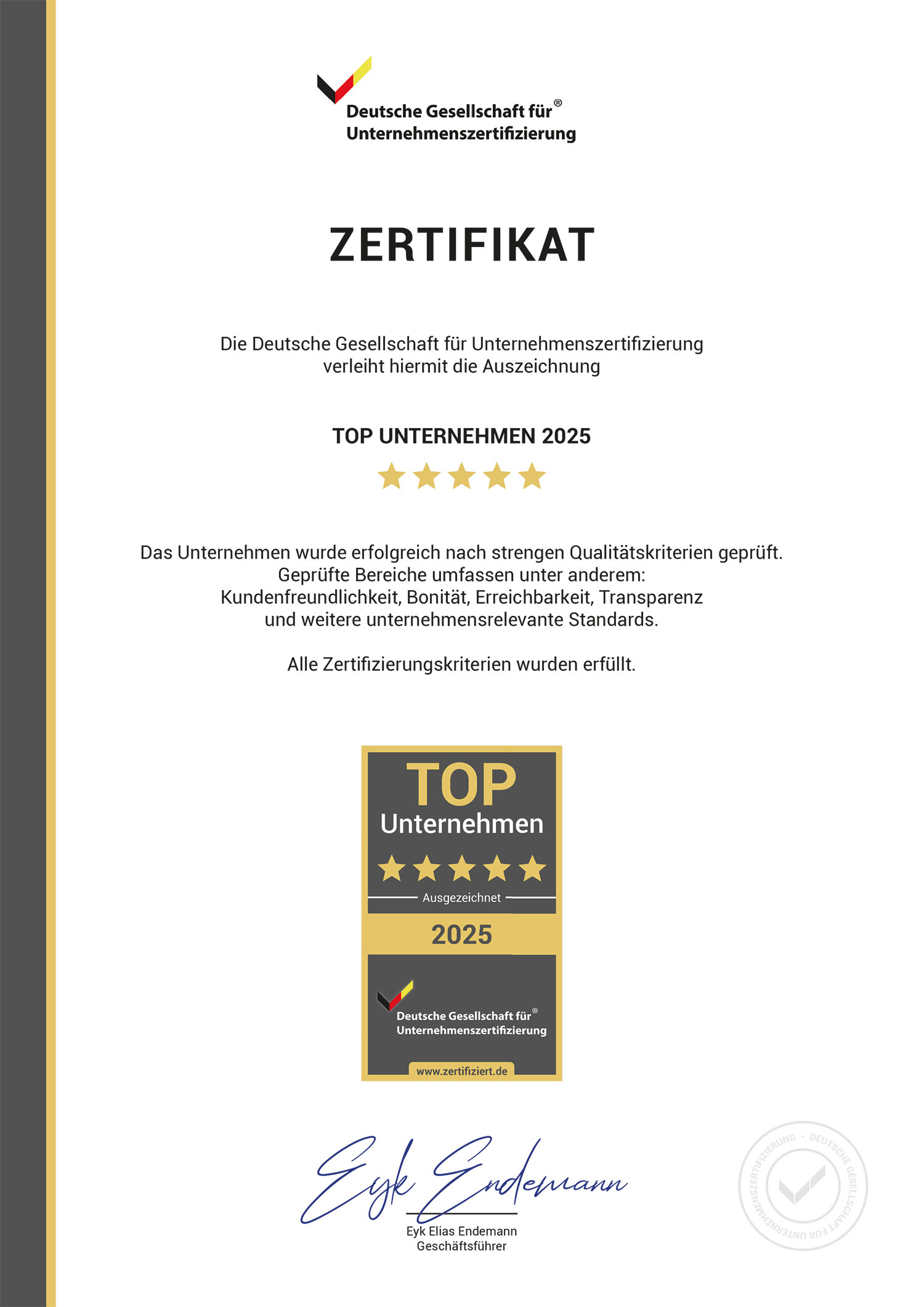 - Ehrenurkunde